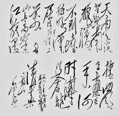 解放战争阶段,也是毛泽东的诗作比较少的一个阶段。这个阶段毛泽东诗词的代表作是吟出了“天翻地覆慨而慷”的《七律?人民解放军占领南京》。其次有《五律?张冠道中》《五律?喜闻捷报》《七律?和柳亚子先生》。笔者认为还有两首诗应收到这个阶段的毛泽东诗词中。一首是 “军队向前进”的五言诗:“军队向前进,生产长一寸,加强纪律性,革命无不胜。”这首诗凝练地表达了毛泽东对军队、生产、纪律与革命胜利关系的认识,具有重要的理论和实践意义。另一首是“公私兼顾”的四言诗:“公私兼顾,劳资两利,城乡互助,内外交流。”这首诗集中表达了处理好四面八方的关系,管理好国家、建设好国家的思想,对指导革命向建设的转变、工作重心由乡村向城市的转变产生了极大的影响。