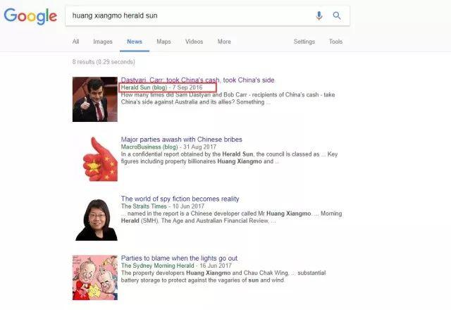 这不,今天澳洲各家主流英文媒体中,几乎没有任何一家报道了《先驱太阳报》为黄向墨澄清事实,澄清他不是中国间谍的事实。Google搜索引擎给出的结果,仍然是之前那些抹黑他的文章……