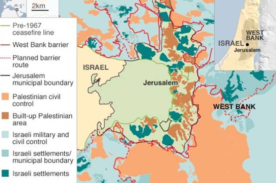 和美国相反,绝大多数国家支持建立以1967年边界为基础、以东耶路撒冷为首都、拥有完全主权的、独立的巴勒斯坦国。目前,在耶路撒冷,有着以色列总统的官邸,但却没有巴勒斯坦总统的官邸。在1967年以色列国防军彻底占领耶路撒冷以后,以色列政府花重金改造西区,特别是中央政府办公区,修建了以色列国会山、中央银行大楼、最高法院、国家博物馆、希伯来大学吉瓦特拉姆校区,而包裹老城的东区,由于归属未决,且阿拉伯人众多,一直没有得到改造。沿着雅法路,以西是街道较为整洁、高档饭店林立、步行街游人如织的耶路撒冷西城,以东则是冲突丛生、街道破败不堪、交通混乱的东区。虽然以色列政府没有出台任何规定,禁止犹太人去东区居住或阿拉伯人来西区置业,但两个民族坚守“自然隔离”,绝不去对方的聚居区居住。有时路过雅法路,笔者总是在想,何时才能让巴以双方消除彼此的仇视,拆除他们心中的这道隔离墙。而以色列政府10多年来修建的有着高科技含量的隔离墙更是完好无损,难以动摇。