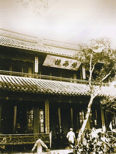 即便卫生条件有些不堪,但由于地理位置优越,依然有不少知名的店选在张家弄内落户。1921年,浙江兰溪籍商人张锦泉在此经营了一家粽子店,取名“五芳斋”,后来又有两个嘉兴商人在同一条弄堂各开了一家“五芳斋粽子店”。除了在选料和工艺上展开竞争外,三家店为了招揽客人也是想尽办法,在招牌上做文章。第一家画了只乌龟寓意百年老店,第二家画了只公鸡来比喻开业最早,第三家干脆写上了“真正粽子大王”六个大字。解放后,张家弄被拓宽为大马路,三家“五芳斋”合为一家,传承至今;而鸳湖旅馆除了店名和地理位置,并无任何照片与文字资料留存。能够确定的是,鸳湖旅馆的隔壁就是“寄园”,而张家弄的商业发展在很大程度上依赖于“寄园”。1880年,嘉兴人沈若荪建造了“寄园”,在里面开了嘉兴第一家影楼震昌照相馆,此后又出现了浴室、书场、烟灯、酒肆、旅店等供人消遣的场所,不定期还有杂技表演和禽兽展览。辛亥革命后,“寄园”内有一茶室名招仙鹤馆,又称“老爷厅”,因为不少前清遗老绅士和失势官吏喜欢在这里会面。此外,芝兰之室是闲散小开、墨客文人的活动空间,可琴轩是画家、书法家们的精神乐园。在钱云看来,“寄园”实际上是一个综合娱乐场所,集吃喝、住宿、玩乐、听唱、书画、会友等诸多功能于一身,类似于上海的大世界和城隍庙。