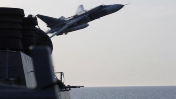 俄罗斯苏-24攻击机飞掠美舰,距离仅9米