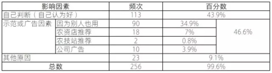 表 2.2 影响五省调研点农户品牌选择的主要因素