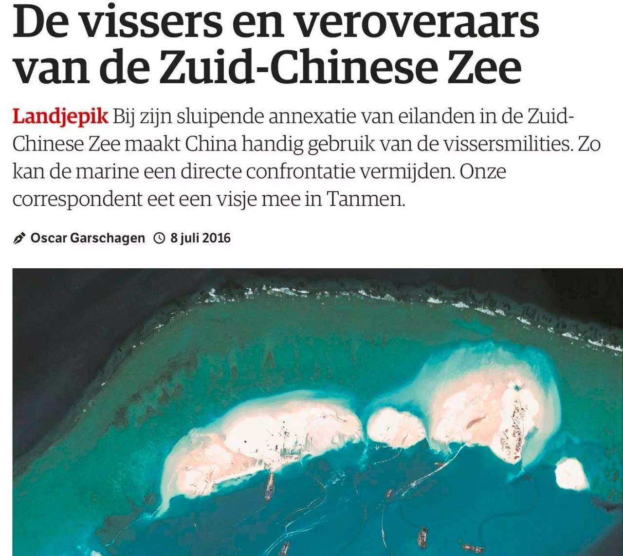 而我们在潭门镇采访过的一位不愿透露自己名字的船长更可怜了。不仅被强行取名为“Feng Ruibo”,更被报道了一段实际上他从未讲过的故事:在到西沙群岛和南沙群岛渔场捕鱼的时候,船长为了“在履行爱国义务”,经常会带些水泥、钢材和木头等建筑材料过去修建岛礁。