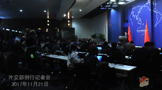 原标题:2017年11月21日外交部发言人陆慷主持例行记者会