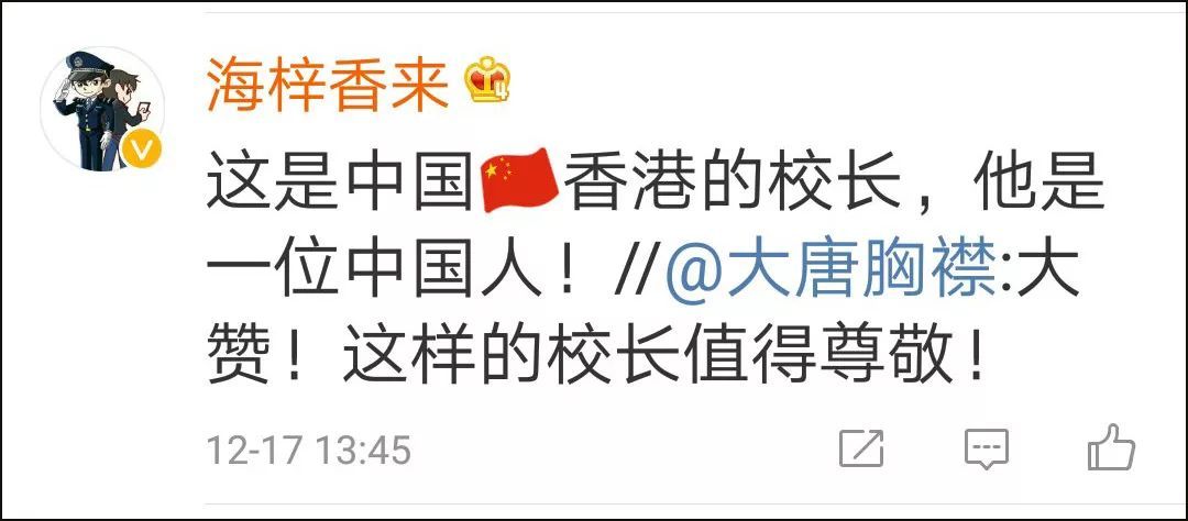 这件事随后传到内地,并在微博上引起了网友关注,纷纷对陈卓禧校长的作法和话语点赞: