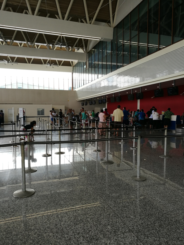 笔者看到,入境大厅旁是由中国公司建设的新候机楼。待一周后笔者离开萨摩亚时,该楼已经启用。大厅宽敞、明亮,通风设施好,有吊顶电扇和空调(显然是中国品牌)。登机与出境手续都是电脑完成。整个离境过程轻松惬意,完全让人忘记了入境时的狼狈不堪。法莱奥洛机场负责人对笔者表示,新候机楼投入运营后,将极大改善游客体验,有助于吸引更多游客来萨摩亚度假。