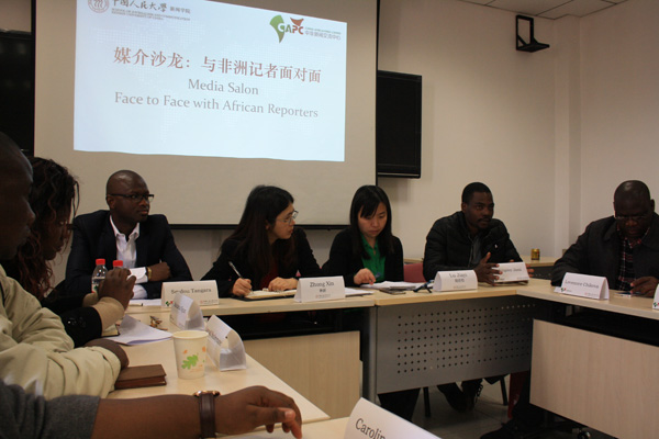 来自非洲的记者们在人民大学媒介沙龙与学者交流。