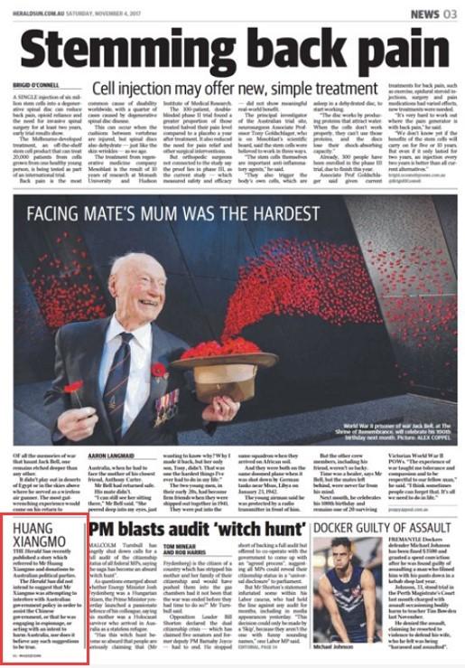 因此,今天《先驱太阳报》的这份“更正声明”,不仅还了黄先生的清白,更狠狠地给了那些如今还在把华人华侨乃至留学生和商人抹黑成是“中国间谍”的澳洲媒体与政客一记耳光,充分揭露了他们自己其实也并不相信自己报道中的那些栽赃言论的讽刺事实。