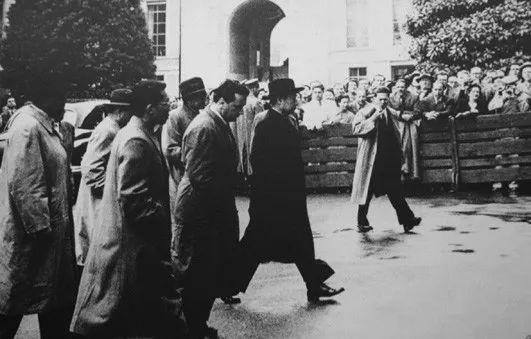 ◆1949年12月16日,毛泽东访问苏联在抵达莫斯科车站时,受到苏联党政领导人布尔加宁(右一)、莫洛托夫(右二)等的热烈欢迎。