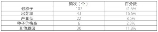 表 2.3 五省调研点农户购买种子时所担心的主要问题
