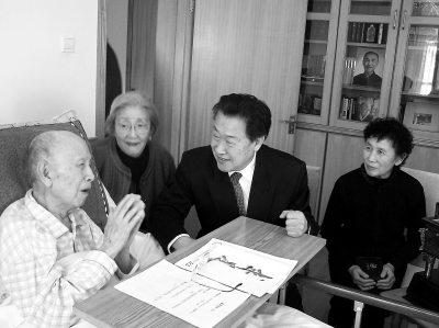 2005年12月,王永志夫妇探望钱学森院士。