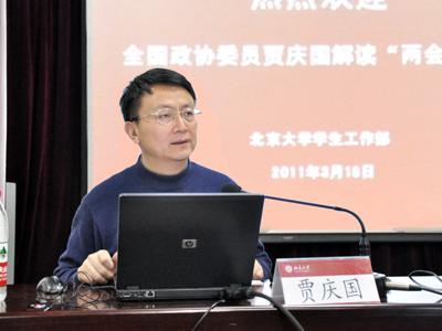 贾庆国生于1956年,现任北大国际关系学院院长、教授和博士生导师。但是,其主要的学术资历并不是在中国取得,而是在美国为代表的西方国家取得的。1984年时,贾庆国在美国康奈尔大学取得了政治学硕士学位,1988年又在美国康奈尔大学取得了博士学位,是著名台湾政治人物李登辉的校友。