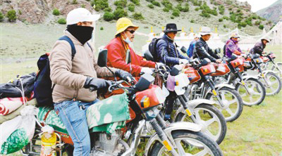 香巴求培当上了村里的管护队长,每天晚上将巡护人员安排和区域分布情况发到微信群里。大伙儿领了任务,第二天一大早就骑马出发。这批康巴汉子给自己的队伍起了个“霸气”的名字:索加金雕巡护队。他们既要对责任区生态状况、火情灾情、基础设施建设进度等进行监督、记录、上报,也要帮助上级部门清点草场载畜量、开展政策法规宣传。