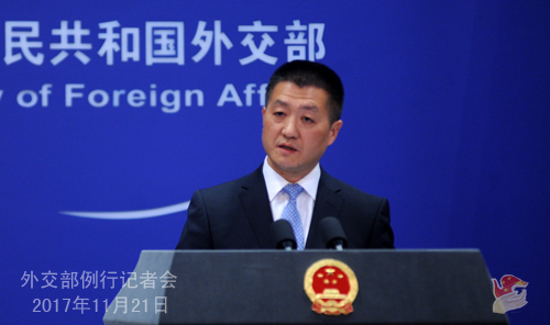 原标题:2017年11月21日外交部发言人陆慷主持例行记者会