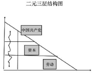 对于这个“二元三层结构”图提的最多的问题是从定义出发——我们是“社会主义国家”,劳动人民“当家作主”。为什么劳动的社会地位是在资本的下边?我认为,我们社会的资本上面还有中国共产党,而中国共产党是工人阶级先锋队,是劳动阶级的精髓、精英。中国共产党是工人阶级先锋队,是一个队伍实体。这个“工作队~战斗队~宣传队”的工人阶级立场由于有马列主义意识形态所武装,所以自觉、坚定,其主体性是有完整、成熟的阶级规定性的,不是一种机会主义游移立场的代表性。这种阶级的规定性被十八届党中央的伟大实践所证明。