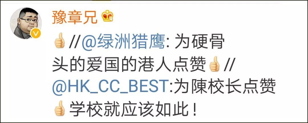 这件事随后传到内地,并在微博上引起了网友关注,纷纷对陈卓禧校长的作法和话语点赞: