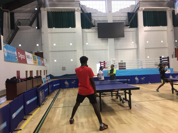 乒乓球教练刘民忠在指导瓦努阿图队员训练